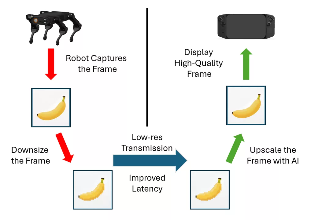Relais IA Dynamique : En cas de besoin (latence, signal faible), le système bascule sur un flux léger restauré par IA en local sur la manette.