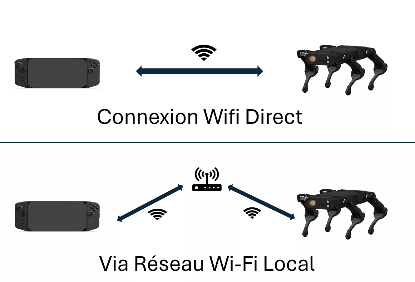 La manette fonctionne soit en connexion directe, pour un lien simple et autonome, soit en réseau local, via un routeur.